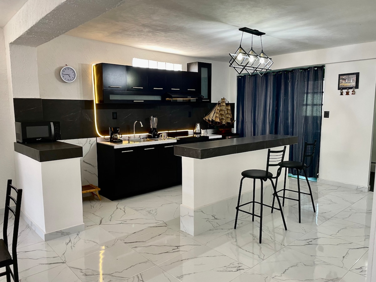 Vive la Tranquilidad con Rooftop Exclusivo. ✨ Escápate a este departamento completo que te ofrece un rooftop espacioso para tus momentos al aire libre. Disfruta de 2 habitaciones (1 cama matriomonial y 1 individual), Baño y medio , sala con Apple TV, WiFi de alta velocidad y todo lo necesario en la cocina, frigobar, horno de microondas. Las luces LED y bocinas añaden un toque especial. ¡Queremos que tu estancia sea inolvidable! No contamos con estacionamiento, no petfriendly, no fiestas.