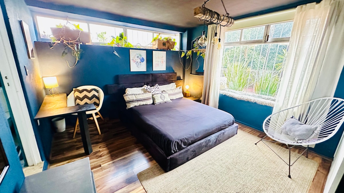 Casa con una recámara , con hermoso jardín japonés. Exclusivo para parejas o persona que busque descansar (no locación para eventos , vídeos , sed de fotografías ) Planta baja estilo industrial , primero y segundo nivel diseño japonés . completamente nuevo, totalmente equipado, con acabados de lujo. El alojamiento es completo para ti. Contamos con Estacionamiento a fuera del alojamiento (calle ). Una experiencia única en el corazón de San Angel . A tres cuadras del Restaurante San Angelin.
