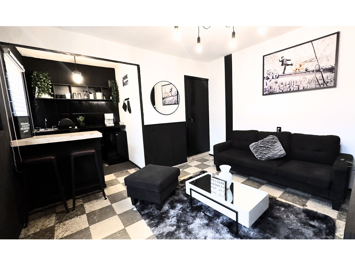 "¡Descubre la vibrante Suite Pop Art en HOMSTY! Sumérgete en un ambiente lleno de color y creatividad, inspirado en el arte pop. Disfruta de una cómoda cama matrimonial, un baño moderno con amenidades de lujo, y una sala de estar con decoración única y ecléctica. Relájate con Netflix en la pantalla plana de 43", prepara un café en la cafetera de cortesía y déjate envolver por el encanto artístico. ¡Reserva tu experiencia Pop Art ahora y vive una estancia inolvidable!"