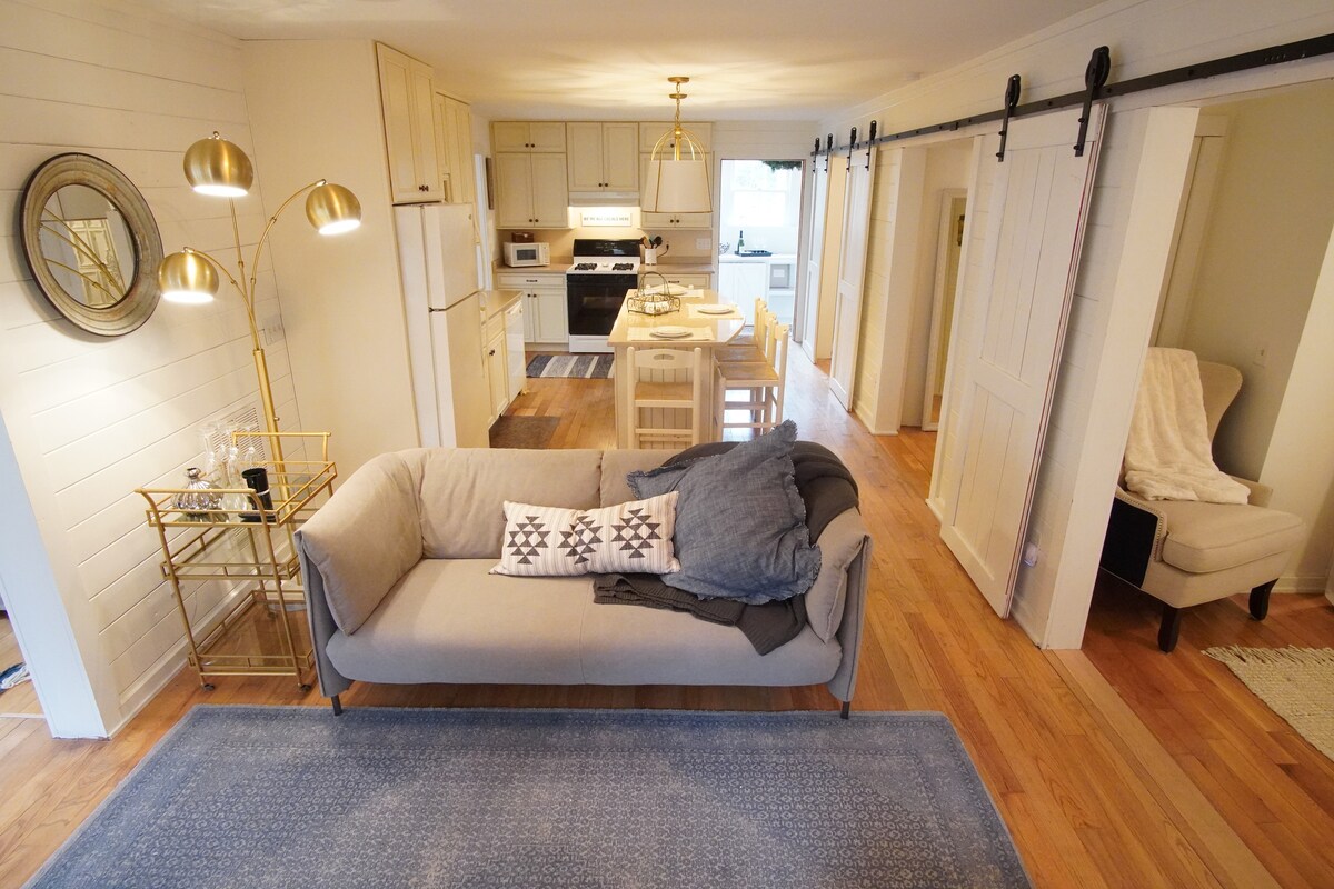 Hasta 2 adultos y 1 niño (cama de día). Situado en la parte superior de Georgia, cerca de las ciudades gemelas de McCaysville, GA y Copperhill, TN, este cómodo y elegante estudio fue completamente renovado desde cero en 2018. Con 884 pies cuadrados, es del tamaño perfecto para una escapada romántica en pareja. Hay una cama de día disponible para un niño. Un montón de ventanas con persianas de plantación personalizadas para abrir y llenar la habitación con mucha luz. Este es un alojamiento estricto para no mascotas.