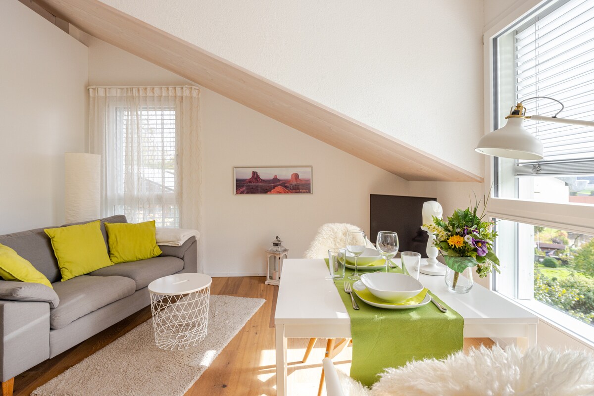 Cómodo apartamento de 2 habitaciones con mucho ambiente y unas vistas fenomenales de los Alpes. A unos 10 minutos a pie de la estación de tren. El centro de Berna está a 15 minutos en tren. Hermosa zona de recreo justo en la puerta de la casa. Un paraíso para paseantes, corredores, ciclistas, nadadores o patinadores. El apartamento está en el ático con acceso por ascensor. Aparcamiento en la puerta. Los anfitriones viven en la casa y están encantados de ayudar y aconsejar.