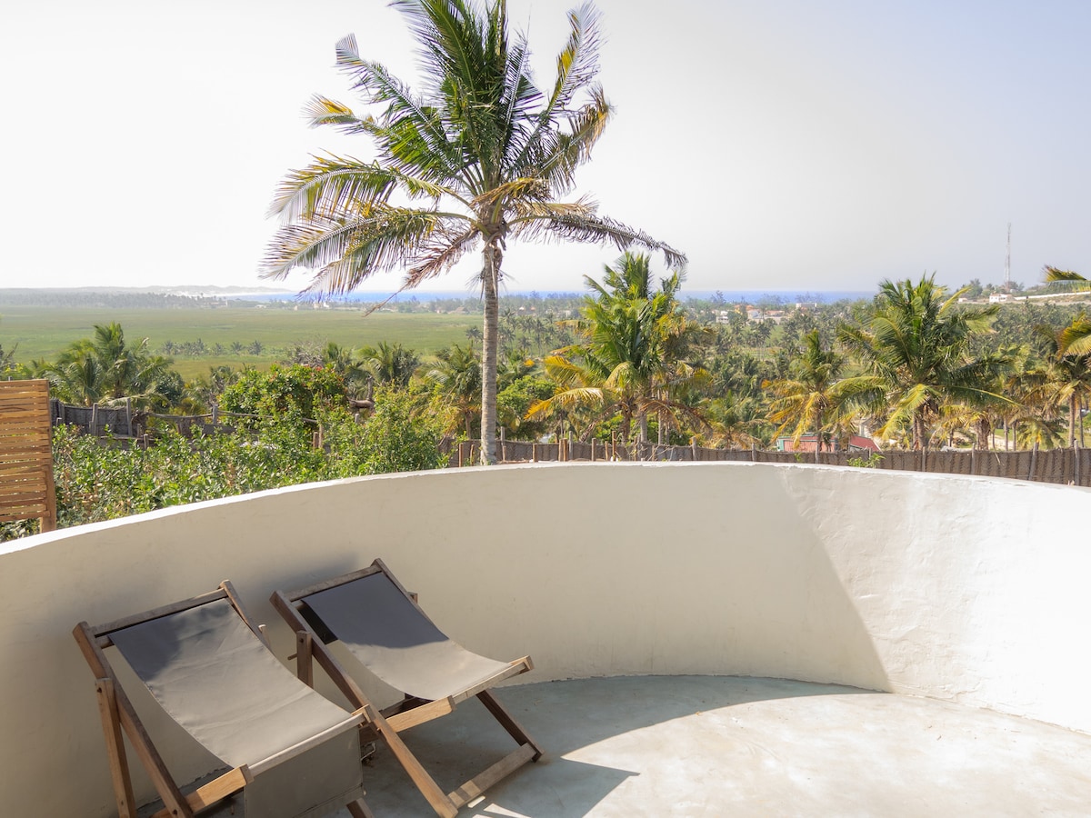 ¡Escápate al paraíso en Boho Apartments, una encantadora joya colonial frente a la playa, a pocos pasos de la arena! Esta joya de la planta baja ofrece unas vistas impresionantes de la bahía de Tofo y el océano Índico turquesa. Disfruta del yoga matutino, de clases de surf o de un café tranquilo en la terraza mientras te sumerges en el ambiente relajado de Tofo. A solo unos minutos del mercado de Tofo, estarás cerca de excelentes comidas y bebidas mientras disfrutas de un retiro tranquilo. ¡Es el lugar perfecto para una escapada de vacaciones!