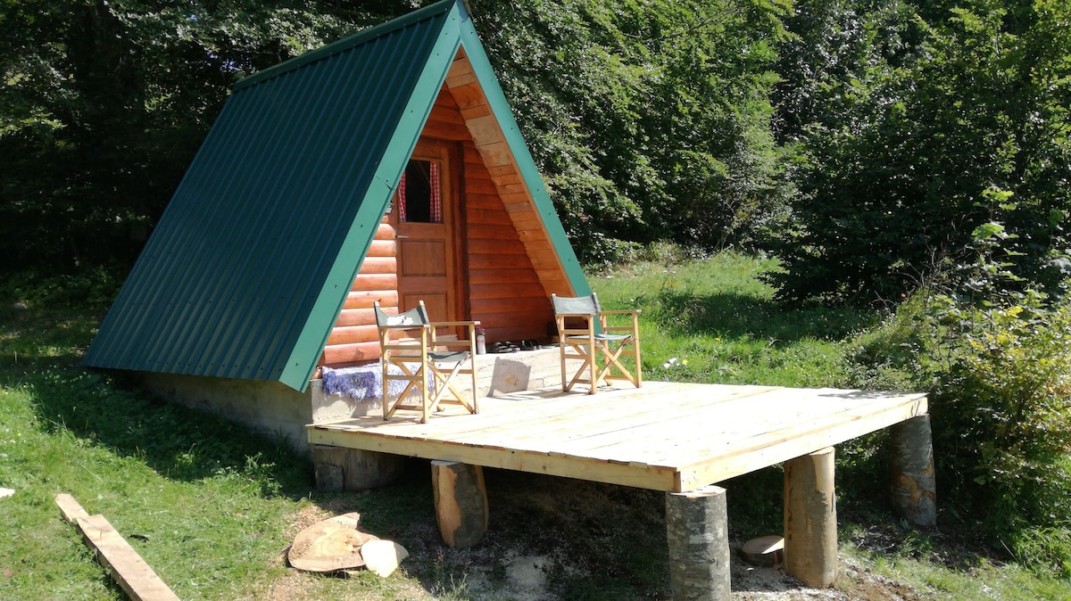 Alójate en nuestra acogedora cabaña en forma de A, escondida en las colinas a solo 3 km de la carretera M20 en Tjentište, justo dentro del Parque Nacional de Sutjeska. Estás en la ruta a Maglic, el bosque primario de Perućica y el lago Trnovačko, perfecto para excursionistas y amantes de la naturaleza. La cabaña tiene capacidad para 2-4 personas (más un sofá para una 5ª), con baño privado, cocina y aparcamiento gratuito. Un restaurante local (Outdoor Tara) está a solo 50 metros de distancia, sirviendo comidas caseras durante todo el día. Sin wifi, solo pájaros, aire fresco y una vista impresionante.