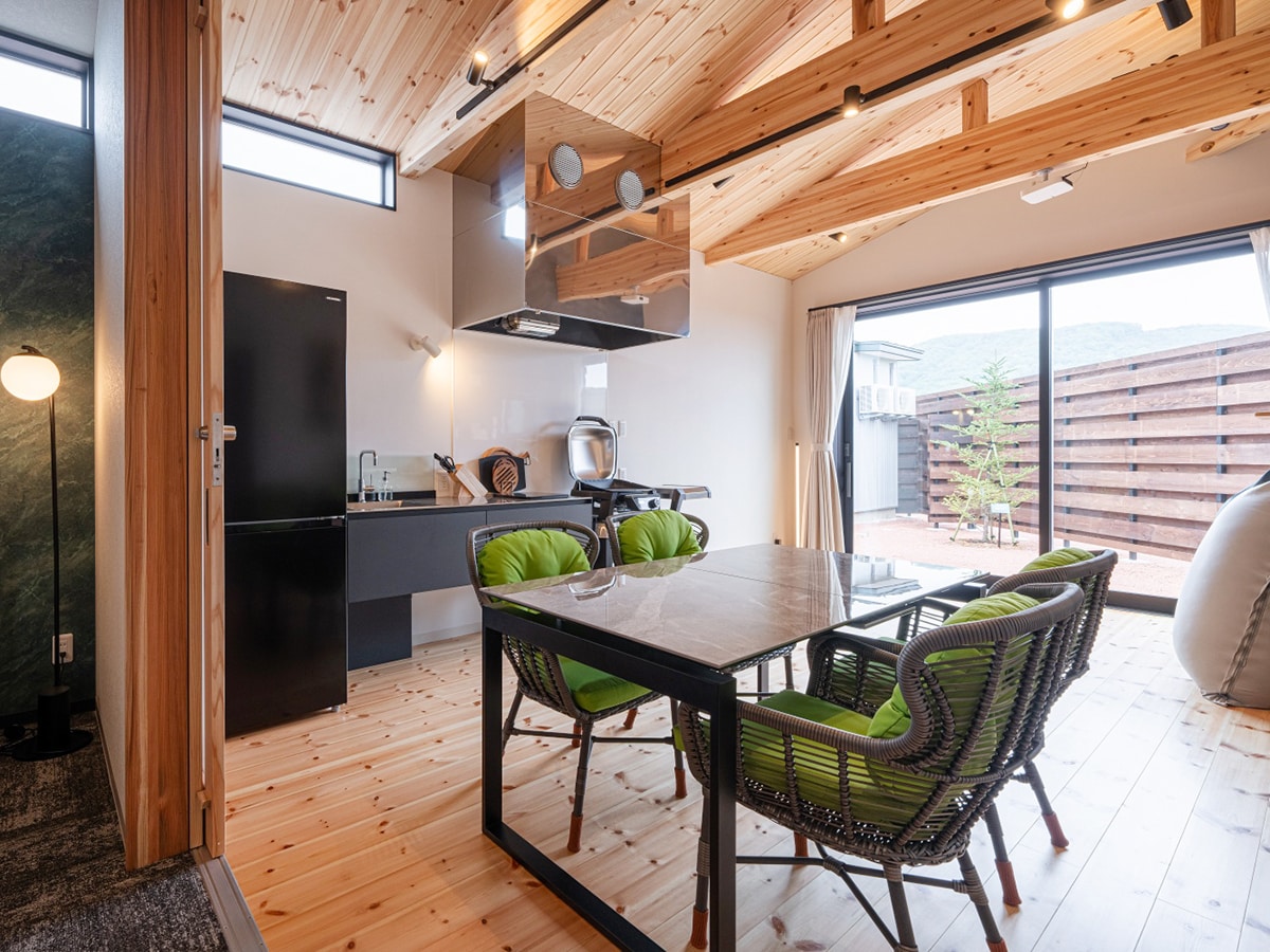 毎年5月〜6月の新緑の季節は、やわらかな若葉が一斉に芽吹き、木々の生命力を感じられる特別な時期です。朝はひんやり、日中は心地よい陽気で、窓を開けると爽やかな風が抜けていきます。 やわらかな若葉に囲まれた景色の中で、朝は澄んだ空気を感じながらコーヒーを一杯。日中は自然の中を散策し、夜は静かな時間をゆったりとお過ごしいただけます。 静かな100坪(敷地1500㎡)の森の庭付き丸ごと一棟貸切の新築ヴィラ。旅サラダや有吉の壁に本宿が取り上げられました。 広々としたヴィラで、心地よいひとときを過ごしませんか?自然豊かな森の中に建つ、一棟貸切の特別な空間です。静かなリビングでは、暖炉の心地よい暖かさが広がり、最新のAladdinプロジェクターでNETFLIXを楽しむことも。リラックスの時間は、最大7人が利用可能なサウナで体を芯から温めた後、屋外ジャグジーで涼むのがおすすめ。 広いウッドデッキテラスからは大自然を一望できます。特別な体験といえば、ガスBBQグリル(有料)を使ったアウトドアダイニング。焚き火を囲んでの語らいや、森を眺めながらの読書の時間も贅沢です。