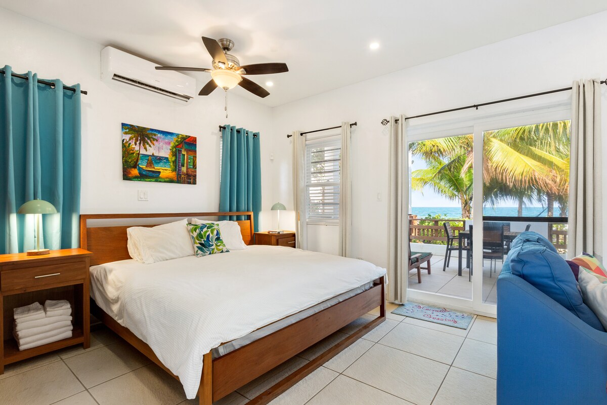 Escápate a tu propia porción privada de paraíso en Praya, una impresionante casa de vacaciones frente a la playa enclavada en el corazón de la península de Placencia, Belice. Recientemente renovado para ofrecer lo último en comodidad y lujo, Praya cuenta con dos amplias habitaciones estudio tamaño king complementadas con dos acogedores futones gemelos, con capacidad para hasta seis huéspedes con facilidad, todo en la comodidad del aire acondicionado completo.