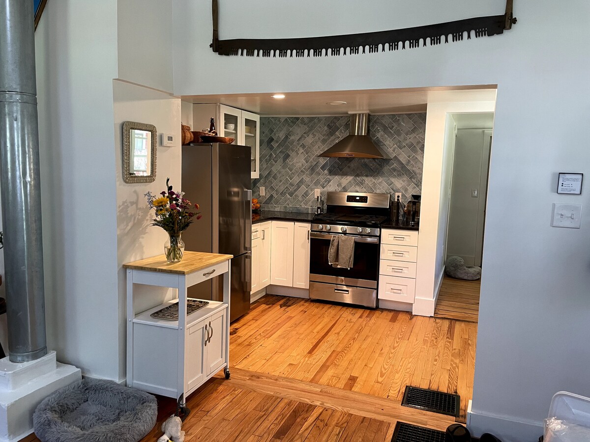 Hayts Chapel, en un hermoso y privado medio acre, tiene un gran espacio abierto con suelos de madera, techos altos, dormitorio dividido, baño completo y cocina. Las grandes ventanas antiguas con cristal ondulado dejan entrar toneladas de luz, pero el ático aislado lo mantiene fresco. Al aire libre tiene una zona de comedor, chimenea de piedra y mucho aparcamiento. Cerca del centro de la ciudad, gargantas, bodegas y granjas de recolección, este entorno tranquilo con un ambiente relajante es un espacio maravilloso para una base de operaciones mientras visitas Ithaca y los Fingerlakes.