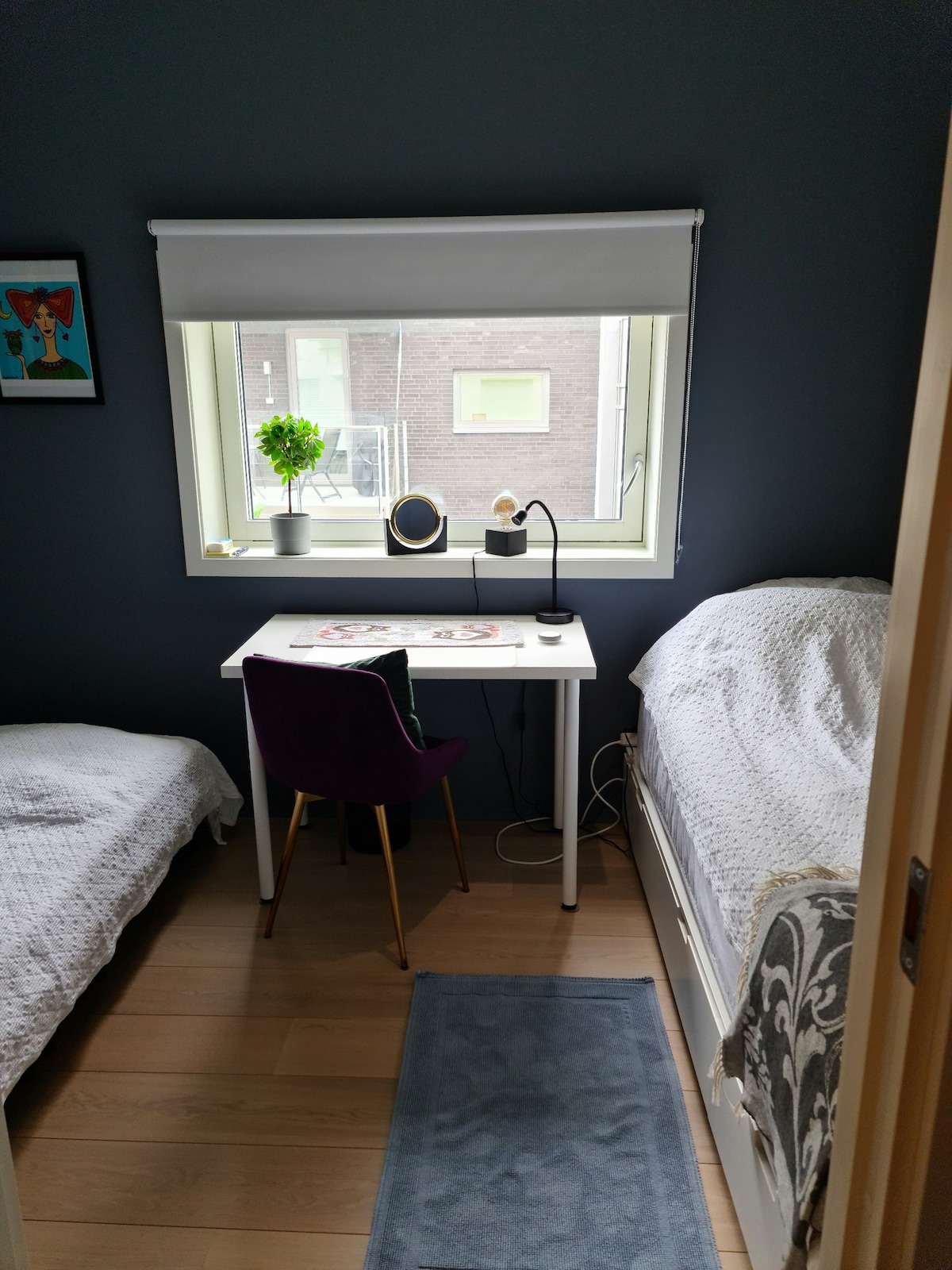 Acogedora habitación y acceso al baño en alquiler en Kaldnes Brygge, a 300 minutos de la pasarela en medio del centro de la ciudad de Tønsberg. Una cama individual y la oportunidad de armar una cama de invitados. Acceso al baño espacioso. El departamento está en el sexto piso. Hay 2 lindos gatos gatitos siamés en el apartamento, pero no serán una molestia (espero). Tampoco tienen acceso a la habitación, a menos que el huésped quiera esto. Se trata de un lugar tranquilo y silencioso.