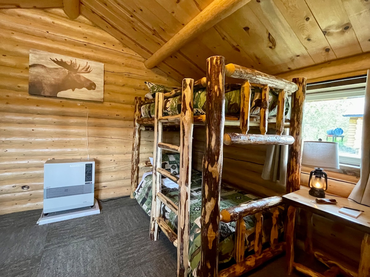 Glacier Cabin es una cabaña de madera de dos pisos construida a mano en nuestra granja de Alaska de 320 acres. Cada dormitorio tiene una cama tamaño queen, uno arriba y otro abajo, lo que brinda comodidad y privacidad. Un baño completo con ducha y un segundo baño con bañera proporcionan una comodidad sencilla después de un día al aire libre. Tendrás agua corriente, electricidad, internet y una pequeña cocina. Sin televisión y tranquila, la cabaña ofrece vistas al bosque, aire fresco y un espacio tranquilo para relajarse y disfrutar del ritmo de la remota Alaska.
