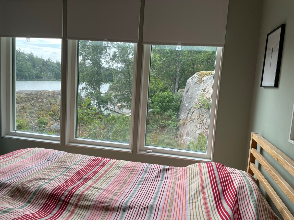 Du/ni kommer att älska mitt ställe pga av naturen, solen från morgon till kväll, lugnet, havet, de gigantiska fönsterna. Njut av lugnet, djurlivet. Huset är byggt för att få er att känna att ni är mitt i naturen fast inomhus. Ta gärna skogsvandringar i närområdet. Till huset tar ni er med fördel med motorbåten med en 4 hp roddbåt, som ingår, då det är ca 500m skogspromenad genom skogen från parkeringen. På vintern går ni genom skogen om båten inte ligger i vattnet.
