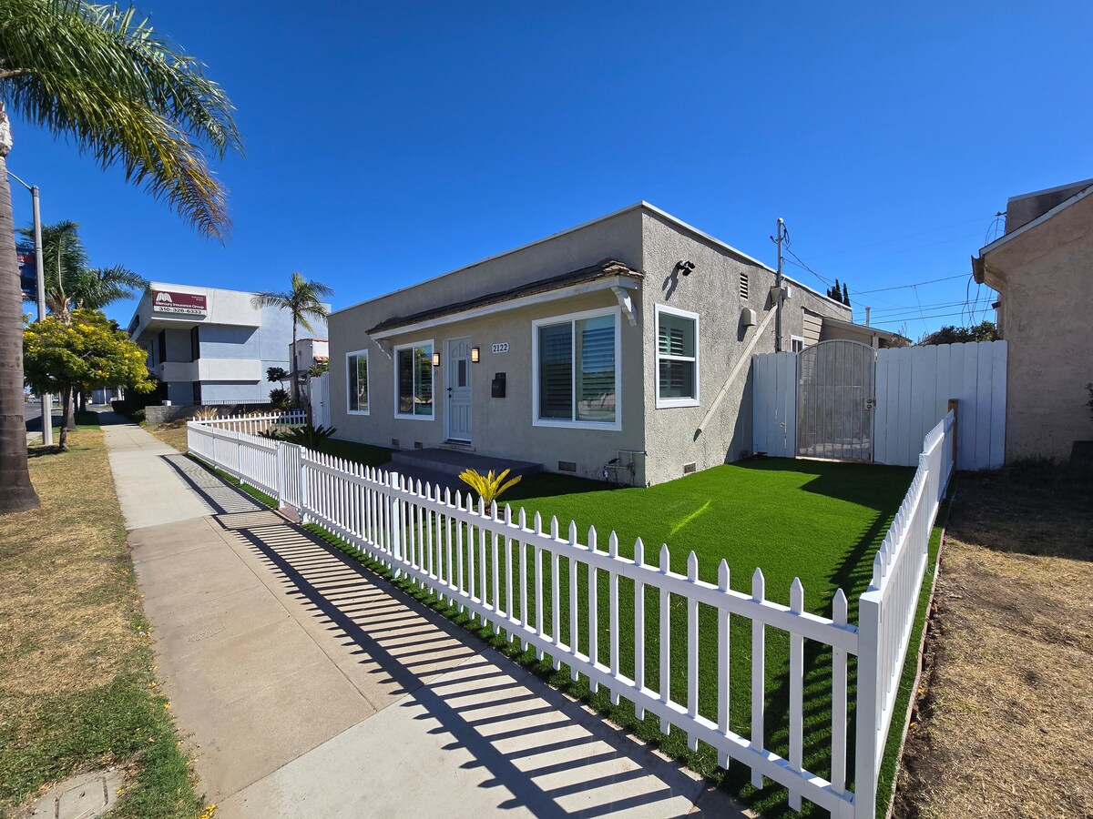 ¡Bienvenido! Deja tus maletas, quítate los zapatos y relájate un rato en nuestra hermosa casa de campo junto al mar. Se encuentra al oeste de PCH y tiene entrada privada y aparcamiento en el callejón. La playa de arena está a una manzana de distancia. Disfrutarás de una luminosa sala de estar para cocinar tus propias comidas en nuestra cocina amueblada o disfrutar de una deliciosa comida en cualquiera de nuestros muchos restaurantes y bares locales en el muelle o en Riviera Village. Tómate un día para disfrutar de nuestras excursiones locales o simplemente siéntate y relájate.