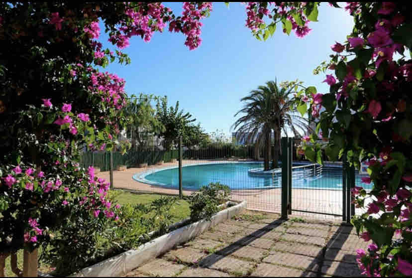 Apartamento de 2 habitaciones, 4 personas, 1 baño, cocina-comedor, terraza cubierta. AIRE ACONDICIONADO, INTERNET WIFI, LAVAVAJILLAS. Su ubicación brinda estupendas vistas al mar, puestas de sol inmejorables. Completamente equipado. Sus dependencias son amplias y sus grandes puertas acristaladas dan paso a la terraza y jardín, favorecen la entrada del sol y luz natural. Jardín privado cerrado para niños y gran Piscina Comunitaria muy tranquila y familiar. CUNA BEBE, TRONA, BARRERA, Smart TV.43"