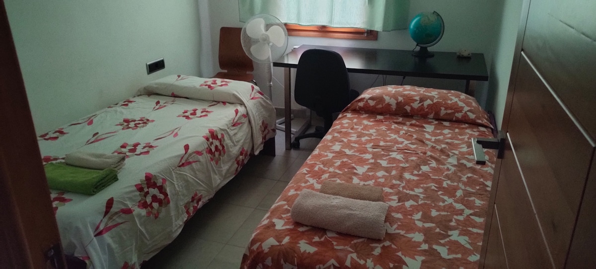 Alquiler temporal piso centro Sabadell. Céntrico de 1 habitación para 4 personas. A 5 min de estación Tren Renfe-30 Min Barcelona. Junto a Gran Vía (posible inconveniente: ruidoso en verano con ventanas abiertas) a 3 calles de Ramblas Sabadell y Ferrocarriles-40 min Barcelona. Cama doble en dormitorio-sofá cama 2 plazas en salón. No hay persianas, hay cortinas antiluz. Ropa de cama limpia pero no planchada. Desde el aeropuerto de Barcelona es difícil el acceso en transporte público (bus y tren)