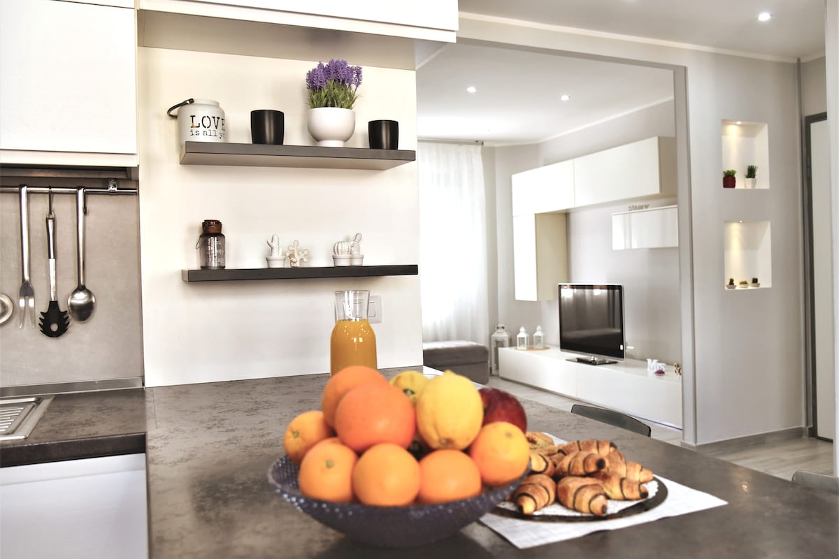 «Terrazza Giulia» es un apartamento ático de 50 m² (situado en la 5ª planta) con un dormitorio doble y un sofá cama adicional en el salón/cocina. El apartamento fue completamente renovado y amueblado en 2024 y cuenta con las siguientes comodidades: Ropa de cama y toallas Cocina completa y artículos de aseo gratuitos (aceite, sal, azúcar) Café espresso, hervidor de agua y tés de hierbas, horno microondas Plancha y tabla de planchar. Wifi de alta velocidad Lavadora y secarropas Cuna.