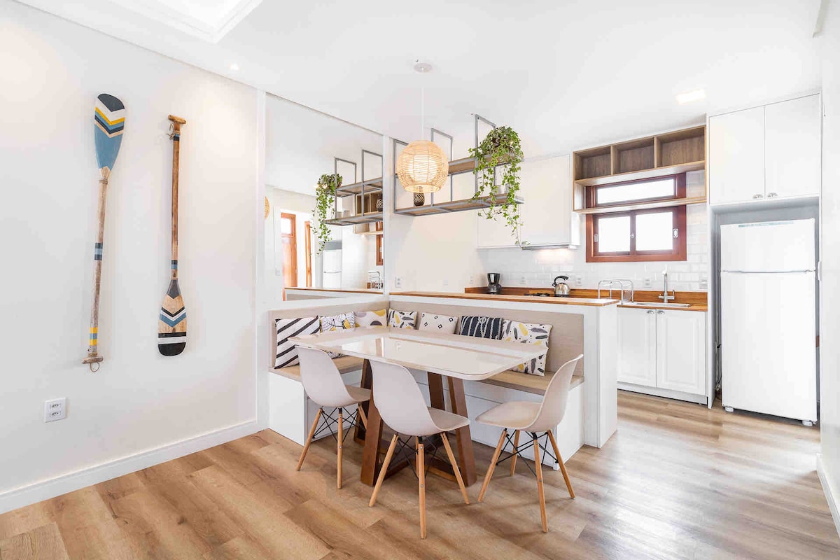 Propiedad con techos altos y bellamente decorada para atender a nuestros huéspedes. ¡Es un estudio amplio y confortable! 30 m2 bien iluminados y con comodidades. Está en la parte trasera de la residencia de los propietarios, pero con entrada independiente. Situado a 400 metros de la playa de Molhes y a 100 metros de la Ruta Gastronómica. Hay utensilios para preparar comidas ligeras, pero si lo prefieres, ¡los mejores restaurantes de la ciudad están cerca! Panadería, supermercado y pizzería también se pueden encontrar en el vecindario