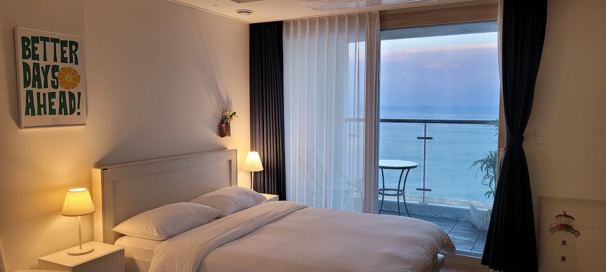 Es un alojamiento con vistas al mar que es más hermoso que en la foto y te hace sentir una sensación más maravillosa. Con un amplio balcón, se encuentra a una distancia óptima para viajar a Gangneung, Sokcho y Seoraksan, con una sensación de alojamiento más relajado. Además de la ropa de cama para 2 personas en el jardín, solicite con anticipación para 1 persona adicional si es necesario. (Hay un costo adicional.)