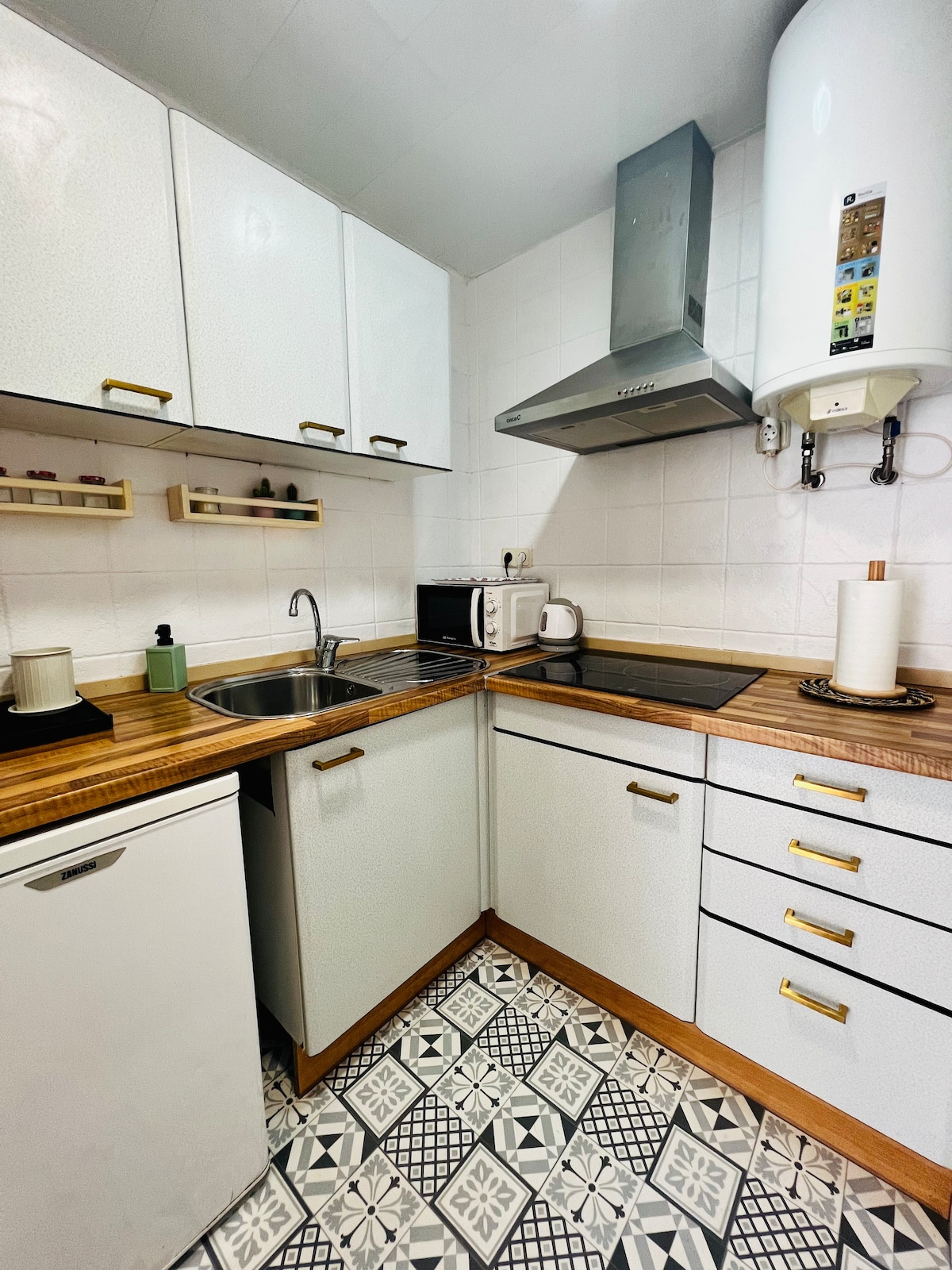 Luminoso, amplio, con cocina y baño recién reformados. Situado a menos de 1 minuto a pie de la playa y de la Vila Vella de Tossa, nuestro apartamento tiene una ubicación inmejorable. Dispone de un amplio salón-comedor, cocina americana, aire frío, calefacción, WIFI gratuita, Smart TV, y un baño espacioso, con secador y toallero eléctrico. Cuenta con 2 dormitorios con armarios empotrados: 1 con cama matrimonial viscoelástica y otro con 2 camas individuales.