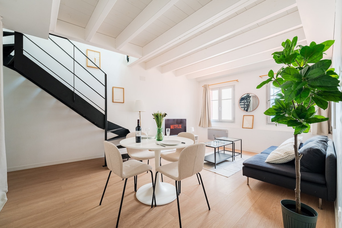 ✨ T2 duplex cosy – métro Compans 1 min, centre-ville Élégant duplex à la décoration soignée. Rez-de-chaussée : salon confortable et cuisine entièrement équipée. À l’étage : chambre cosy, salle de bain et espace de travail dédié, idéal pour télétravail ou séjour professionnel. Confort et praticité au cœur de Toulouse. - Linge, serviettes et produits d’accueil inclus. 🔑 Check-in autonome 24/7 pour un séjour clé en main.