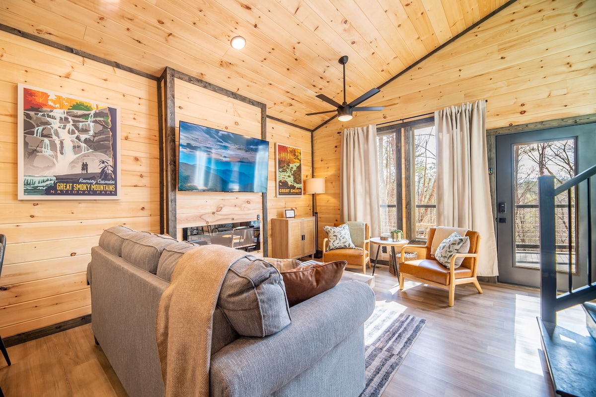 ¡Escápate a este refugio alpino ecológico, a pocos minutos de GSMNP! Disfruta de actividades incluidas como senderismo, paseos en bote a pedales, kayak y pesca en un lago privado de 2 acres. Relájate con la carga de vehículos eléctricos, una acogedora fogata, una parrilla de carbón, una cocina totalmente equipada y una lavadora/secadora en la unidad. Además, una zona de juegos para niños, muelles de pesca, senderos y leña son tuyos durante tu estadía. A 1,5 millas del parque acuático Soaky Mountain. Tiene capacidad para 4 huéspedes, ¡no se admiten mascotas, por favor! Los huéspedes adicionales necesitan aprobación y una pequeña tarifa.