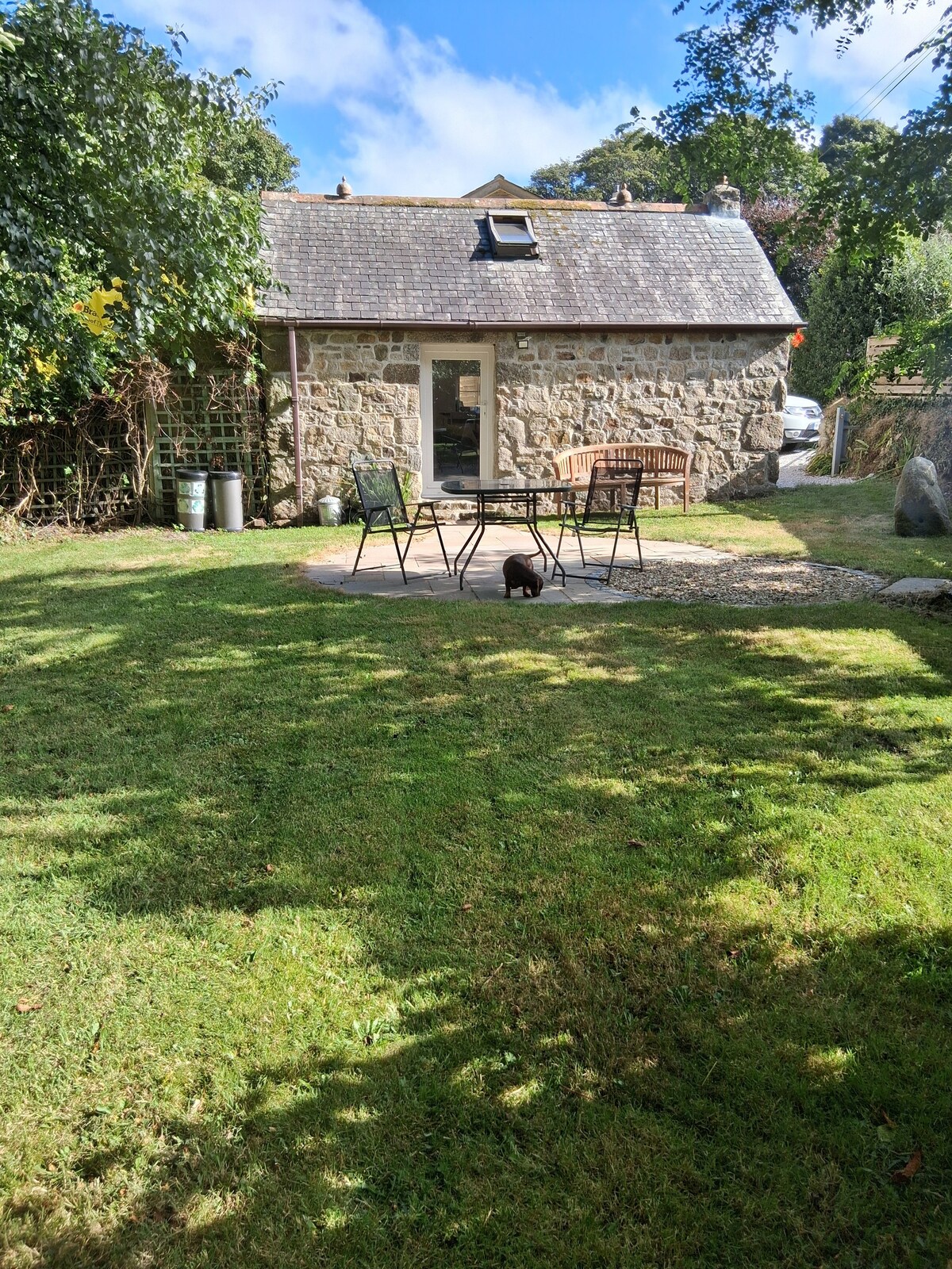 Un estudio luminoso, moderno y autónomo con patio, situado dentro de un hermoso jardín, cerca de Hayle. El espacio ideal para relajarse y desconectar. A poca distancia de la impresionante costa sur y de la espectacular costa norte de Cornualles. Perfecto para parejas, viajeros solos, amantes del jardín, ciclistas, aquellos que buscan algo un poco diferente y cualquier persona en busca de paz, tranquilidad, canto de pájaros y estrellas.