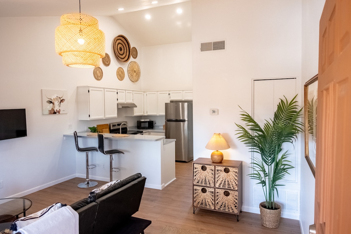 Disfruta de Scottsdale en un espacioso apartamento de lujo con espectaculares y acogedoras vibraciones y comodidades. La vivienda: Wifi rápido → relámpago → Espacio de trabajo dedicado + monitor → Cama cómoda para King Televisión de→ 65" en el salón + Netflix TV de→ 55" en el dormitorio + Netflix → Cocina totalmente abastecida → Lavadora y secadora Aparcamiento → privado. Comodidades de 5 estrellas: Piscina y jacuzzi del→ resort → Cabañas y salones Gimnasio de tamaño→ completo Ideal para viajeros de negocios y clientes corporativos que buscan experimentar la rica cultura de Scottsdale con estilo.