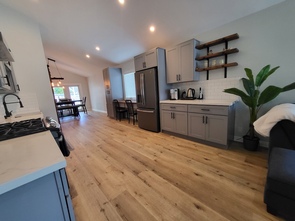 Escape to tranquility in Trabuco Canyon, CA. This fully-renovated two-bedroom, one-bath retreat offers a full kitchen, large patio with propane grill, fire pit, Adirondack chairs, and a laundry room. Surrounded by nature, it’s located on a working farm with chickens and fruit trees. Walk to the historic Cook's Corner Bar, enjoy breathtaking hiking trails, scenic drives, & beautiful restaurants - even a local winery. Guests have full access to the house and patio. Book your nature retreat today!