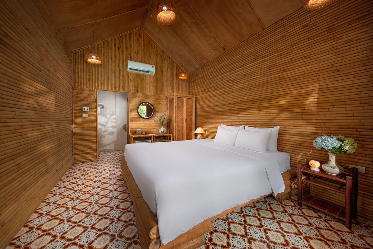 GRATIS: desayuno, piscinas, mapas turísticos para 2 personas. Esta habitación privada es 1 de 13 bungalows en Trang An Retreat. El tamaño de la habitación es de 20 m2 e incluye un balcón, vistas al jardín y a las montañas. La habitación tiene 1 cama doble de 1,8 m x 2,0 m [Nota: Tenemos la opción de 2 camas individuales, envíame un mensaje si lo necesitas], baño privado con ducha y otras instalaciones modernas como aire acondicionado, calefacción, ventilador, nevera, secador de pelo, hervidor de agua y otros equipos personales necesarios...