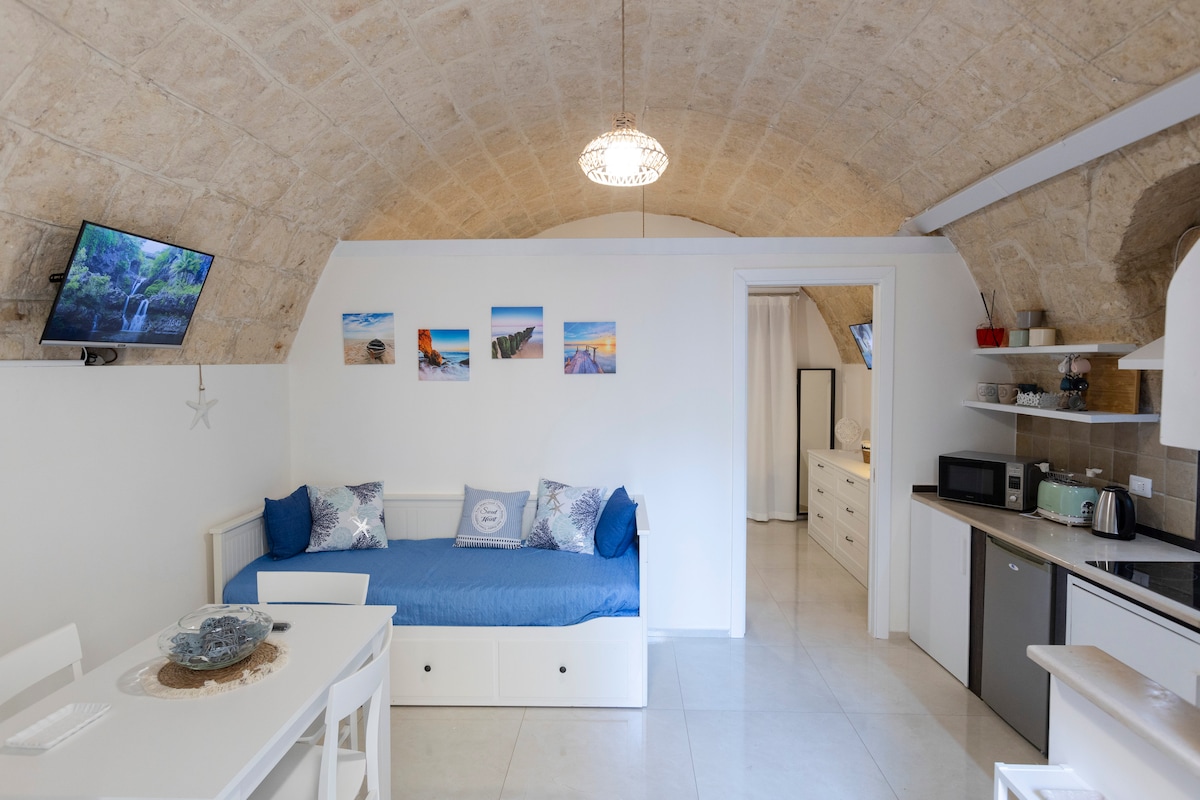 Construido entre los años 1300 y 1400, un loft de piedra con vistas al mar Adriático. Este edificio se utilizó por primera vez una casa de cañones y a lo largo de los años siguientes sirvió como almacén, una fosa de carbón y un taller de un renombrado pintor local. Hoy en día, nuestra familia se compromete a revivir este edificio y su historia, ofreciendo a los huéspedes una estancia única y cómoda en el corazón de Apulia.