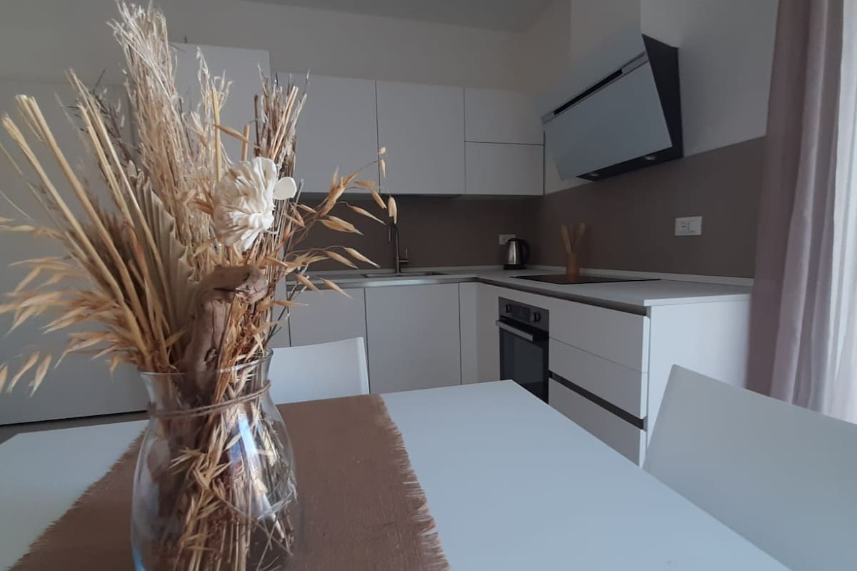 Bright and spacious apartment in Ca’ Savio, Cavallino Treporti, ideal for families or friends. It offers 2 bedrooms, 2 bathrooms, kitchen, dining area and a large terrace to relax. On the first floor of a two-family house with shared garden and private parking, it ensures comfort and convenience. Just 1 km from the sandy beach and a short walk from shops, bars and bike rentals. Perfect base to enjoy the sea, explore the lagoon by bike, reach Venice in 30 minutes and the airport in 50 minutes.