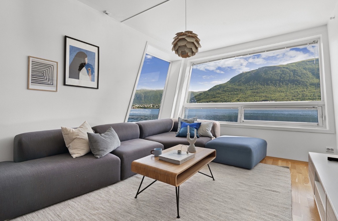 Elegante apartamento en la planta superior junto al mar en el centro de Tromsø con una vista impresionante de la catedral ártica, el puente de Tromsø, el teleférico, el sol de medianoche y la aurora boreal. Disfruta de Hurtigruta navegando desde el sofá cama y escucha las olas chapoteando en el exterior. La entrada forma parte de una terraza acristalada con vistas al sur. El centro está a 10 minutos a pie. El apartamento es abierto, acogedor y un lugar agradable y cómodo para pasar el tiempo. Límite de edad para alquilar: mínimo 25 años. NO SE PERMITE FUMAR DE NINGÚN TIPO.