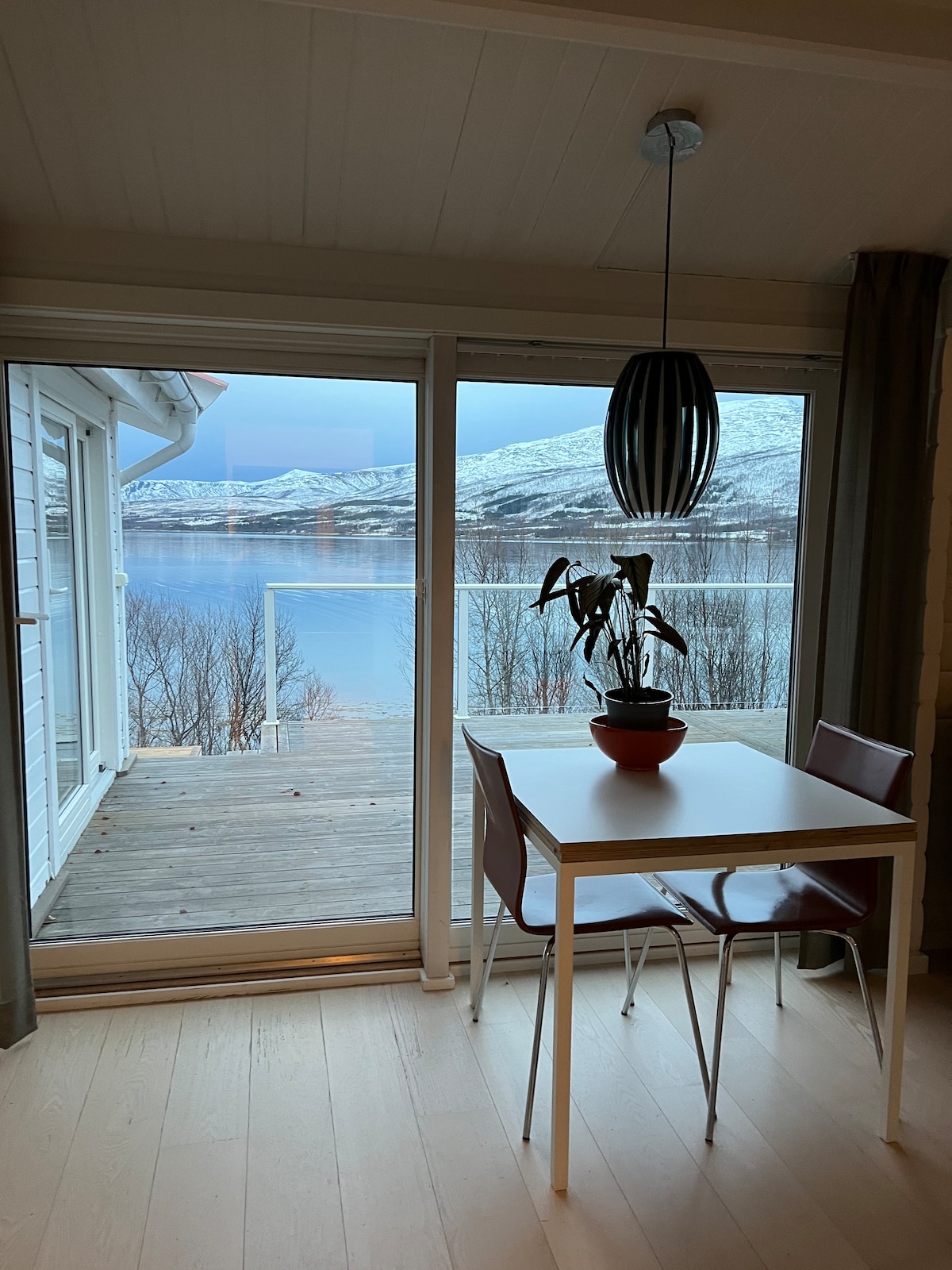 Departamento espacioso y acogedor con una vista gourmosa sobre el fiordo y las montañas. Recientemente renovado y de alto nivel. El apartamento tiene TV por cable, wifi gratuito, una lujosa terraza y cocina totalmente equipada con lavavajillas. El traslado desde el aeropuerto es posible. Grandes oportunidades para hacer senderismo y auroras boreales. Hay barcos de pesca en alquiler si lo deseas. Los propietarios viven cerca y estarán disponibles si necesitas ayuda.