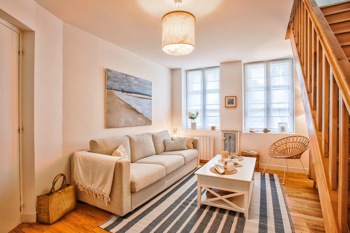 Agarrus Rentals te da la bienvenida a Arlette's en el centro de Trouville: un apartamento luminoso y totalmente renovado de 40 m² con vistas al mar y al río Touques Todo está a poca distancia: playa, restaurantes, casino y estación de tren Perfecto para una estancia de éxito junto al mar para 1 a 4 personas + una cuna y una trona Aire acondicionado, TV, wifi de fibra, lavavajillas, lavadora, horno, microondas, vitrocerámica, campana extractora, nevera, cafetera Nespresso, tostadora, hervidor de agua...