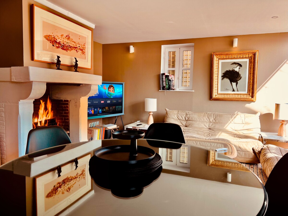 Estudio renovado de 26 m² en la tranquila Impasse Saint-Jean, en el corazón de Honfleur, a solo unos pasos del puerto. Tranquilo y encantador para 2 personas. Chimenea funcional (leña no incluida, disponible a través del servicio de habitaciones). Cama queen-size, cocina, baño, Netflix, Wi-Fi. Patio compartido. Estacionamiento gratuito cerca o gran aparcamiento a 8 min. Mascotas bienvenidas. ¡