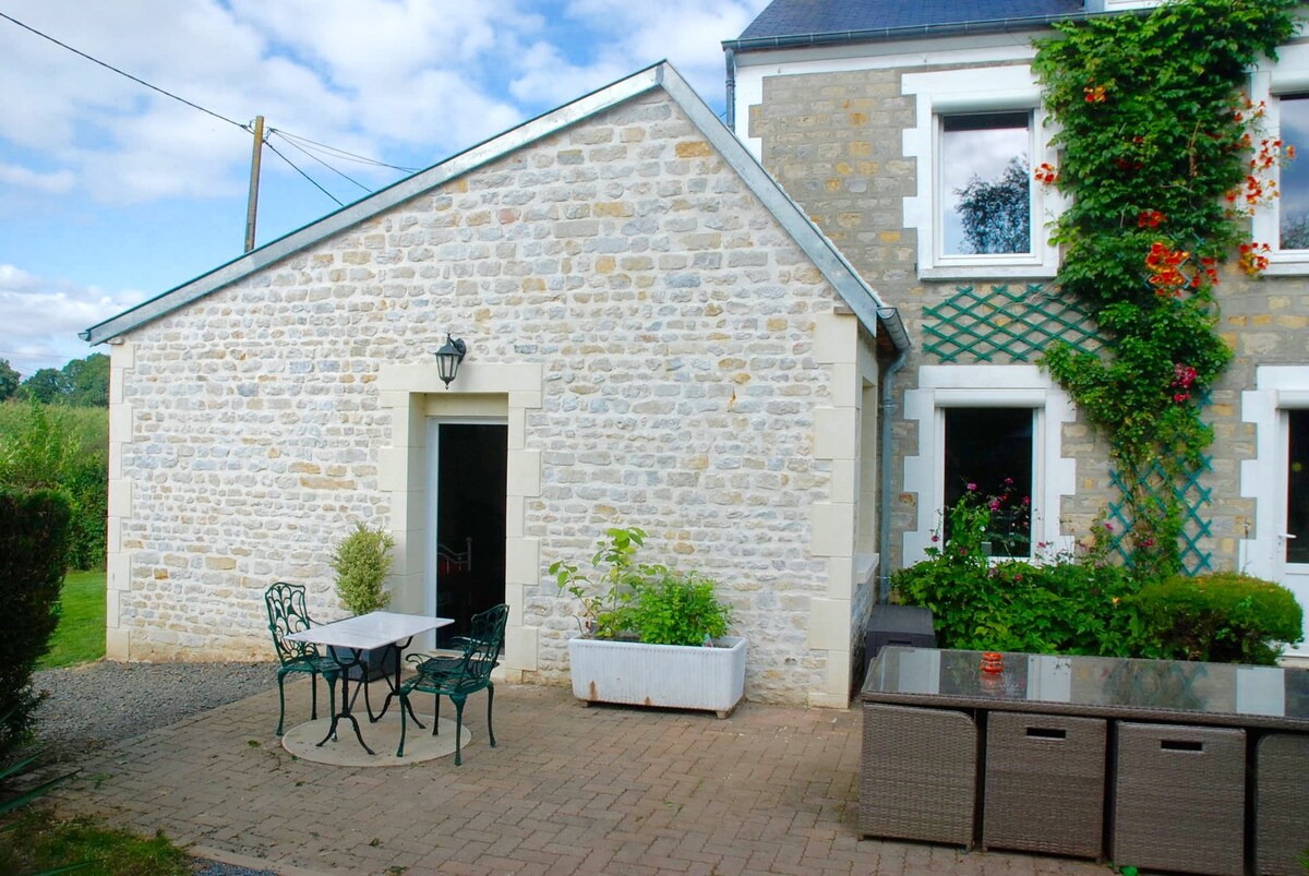 Nuestra pequeña casa se encuentra en un pequeño pueblo a 7 kilómetros de Bayeux y a 30 minutos de las playas del desembarco. La casita está situada detrás de la nuestra con espacio para los coches en un patio cerrado. Cuenta con una sala de estar (con un sofá cama de 130 cm), un dormitorio grande (con una cama de 160 cm), una cocina equipada y un baño con inodoro. Podemos proporcionarle una cuna y una silla para bebé. En el exterior, zona de comedor con barbacoa.