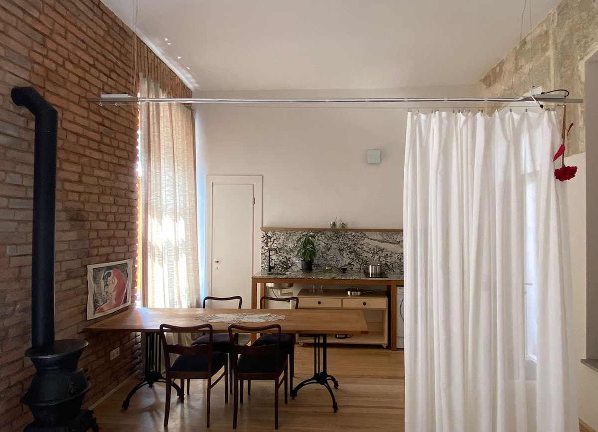 Enjoy your stay in the hottest spot of Tbilisi, surrounded with 5 star hotels: Biltmore, Radisson, Stamba and Rooms and just steps away from Rustaveli metro station and all the main attractions. You will be staying in the vintage loft, located on the top floor of a 1930s stone-built building, with a private terrace and beautiful views. Floor to ceiling windows provide plenty of sunshine, natural light and beautiful views from every room, but there are also heavy curtains for daytime dreamers:)