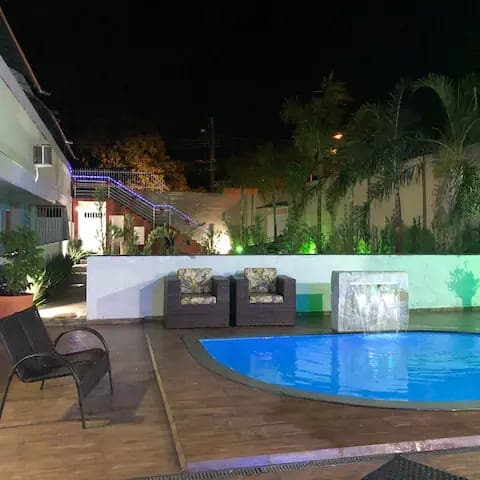 El apartamento está situado en la región de Olimpia, cerca de los parques acuáticos Thermas dos Laranjais y Hot Beach. El alojamiento cuenta con: - Wifi gratuito - Zona de barbacoa privada y con un excelente espacio para mascotas - Aire acondicionado - Utensilios de cocina - Piscina climatizada con calentador solar, que se puede utilizar a voluntad. (Piscina compartida de condominio). Junto al piso hay un restaurante de pescado - Comida rápida como: McDonalds, Subway, Burger King - Bares y restaurantes de gran calidad.