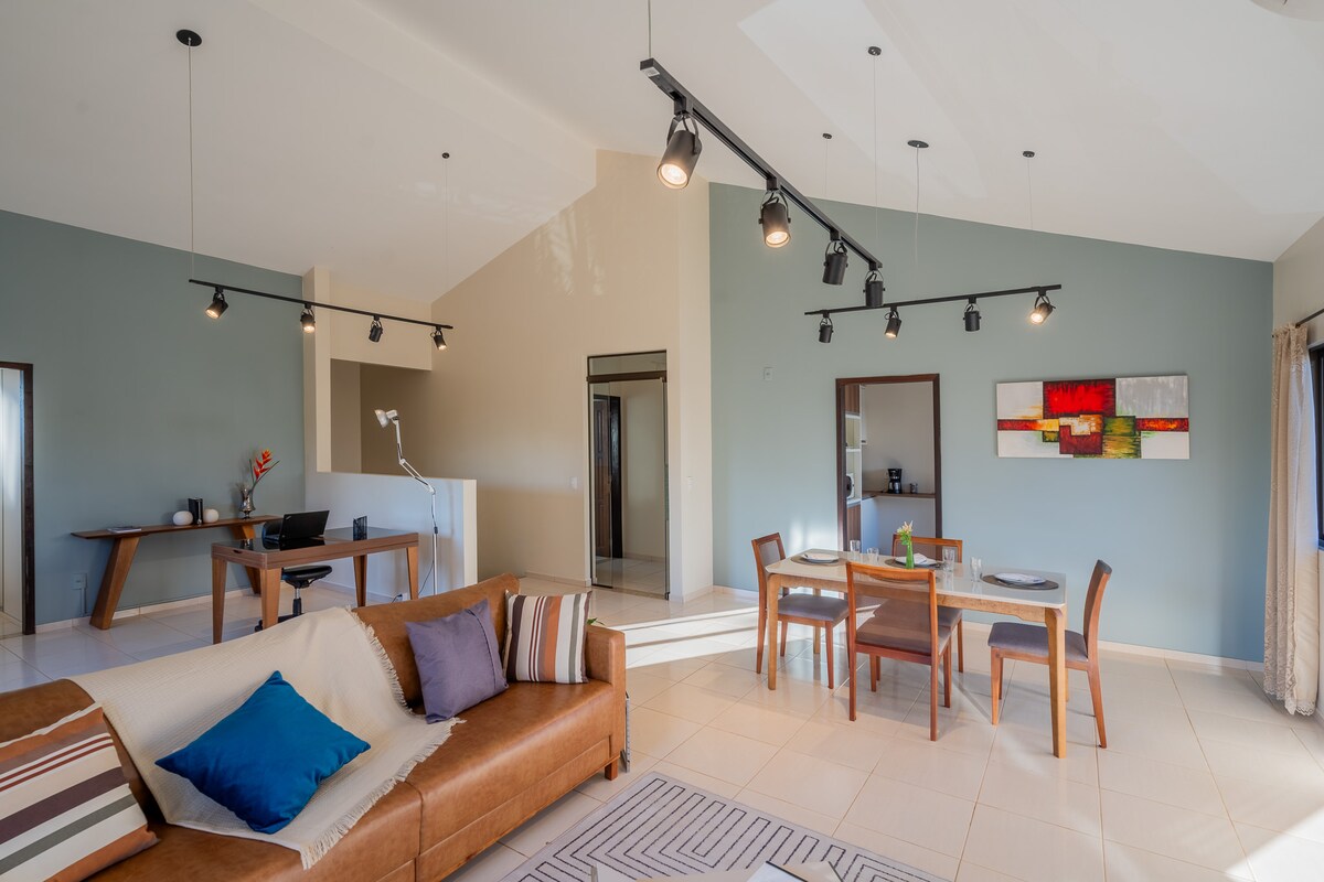 Apartamento nuevo de 2 dormitorios, aire acondicionado en 1 dormitorio, ventiladores en el otro dormitorio y sala de estar. Amplia sala con cocina integrada, balcón. Tiene capacidad para 8 personas con colchón extra. En la misma avenida que Copacol, cerca de la panadería, supermercado, hamburguesería, gasolinera... con muebles completos con cocina, nevera, estufa, TV, sofá, etc. Nota: para estancias largas no proporcionamos ropa de cama y toallas y la limpieza corre a cargo del huésped.