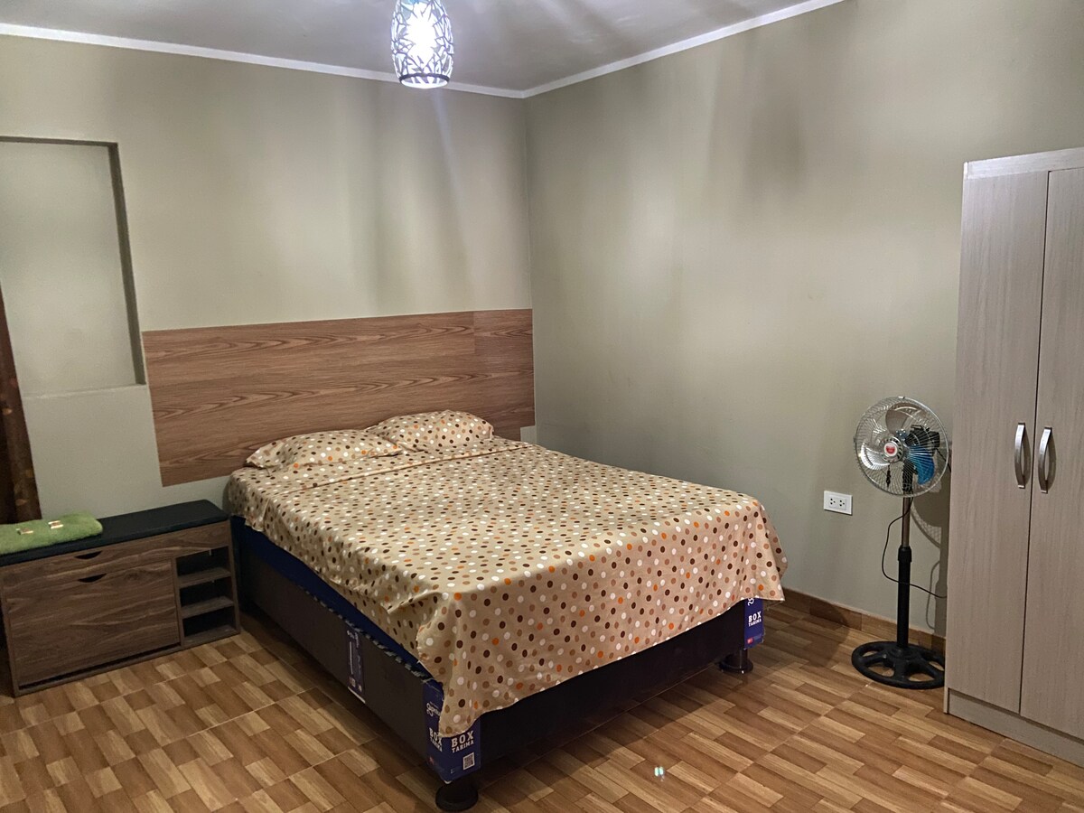 Minidepartamento ubicado en Huarmey a minutos del Balneario de Tuquillo. Consta de 3 camas (1 cama Queen matrimonial y un camarote con 1 cama de 2plazas abajo y 1.5 plaza arriba), cocina abierta, baño, comedor y patio trasero. Con ingreso independiente y cochera interna (según disponibilidad). El Alojamiento cuenta también con otras habitaciones simples, dobles y matrimoniales (a consultar).