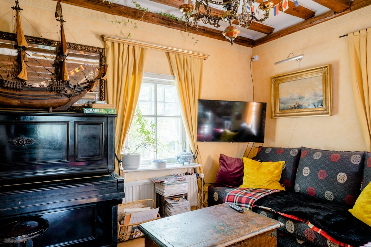 Welcome to the Manor Atmosphere in Yltöinen! Are you looking for a place to stay where history meets relaxed coziness? Our home is located in Yltöinen, Piikkiö, within the stunning and lush grounds of the former Natural Resources Institute. Our manor-style house, built in 1930, offers a peaceful night's sleep near the sea. A warm welcome awaits you here! We live on the second floor with our family of five and our dog, while the ground floor is dedicated to our guests.