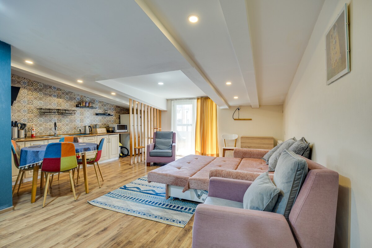 Elegante apartamento recientemente renovado cerca del parque Kikvidze Moderno y luminoso apartamento estudio con colores alegres y un amplio balcón soleado. El espacio incluye 1 dormitorio, una acogedora sala de estar con acceso al balcón y un baño. Totalmente equipado con todo lo necesario para sentirte en casa. Situado en un barrio tranquilo y apacible. La estación de metro de Didube está a solo 4 minutos a pie, y hay una parada de autobús convenientemente ubicada justo al otro lado de la calle.