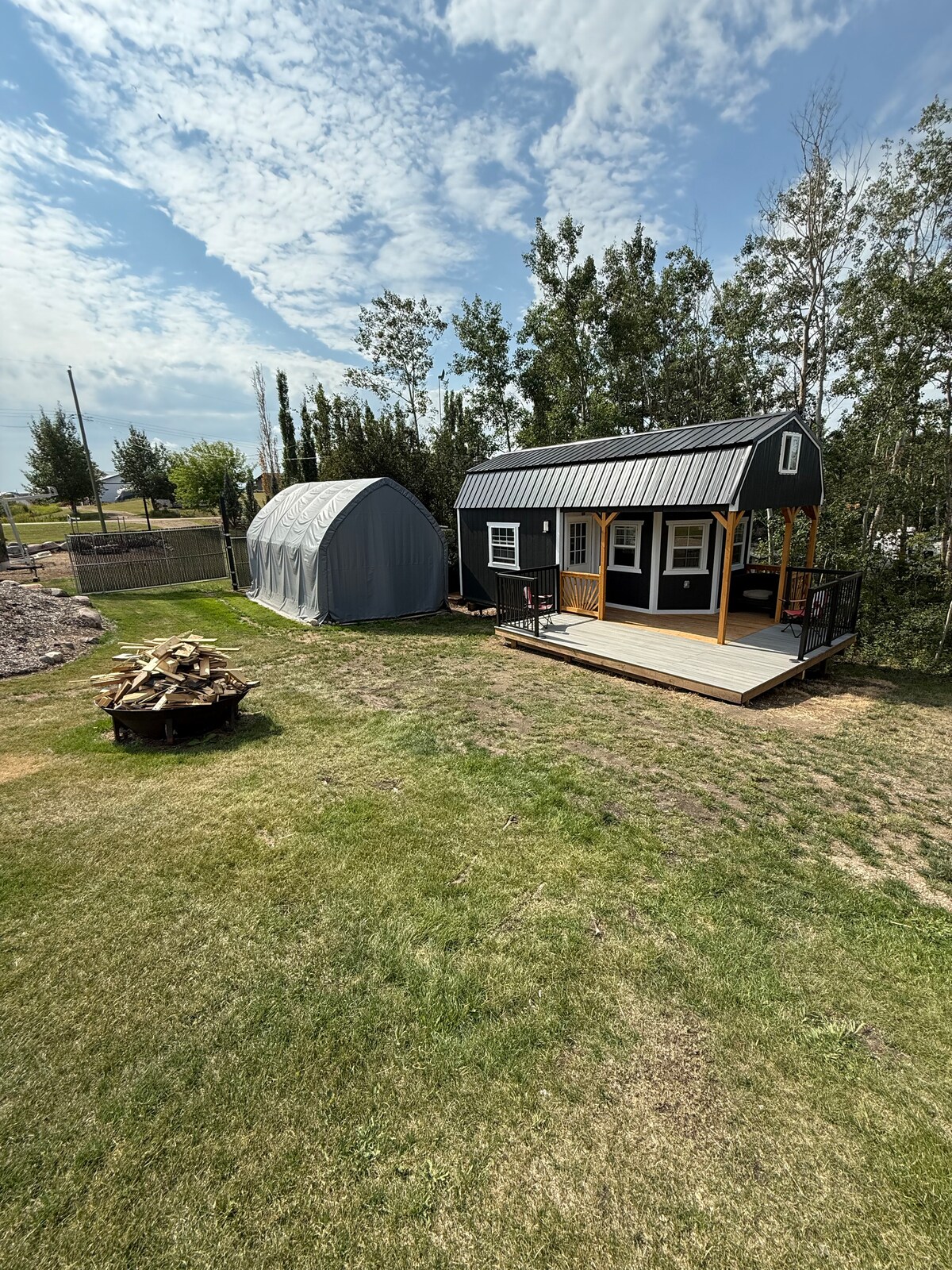 Rompe con tu día a día y relájate en este oasis de tranquilidad aislado situado en 320 acres de tierra aislada rodeada de colinas y bosques. Disfruta de la recolección de bayas silvestres, la abundante vida silvestre, el senderismo por los senderos del monte, sentado alrededor del fuego con las puestas de sol más hermosas que jamás verás. Los niños pueden saltar en el trampolín con red o jugar en el montón de arena. Esta joya se encuentra a 20 minutos de 3 lagos que tienen natación y pesca. Espacio para vehículos recreativos si quieres traer amigos (consulta las tarifas adicionales).
