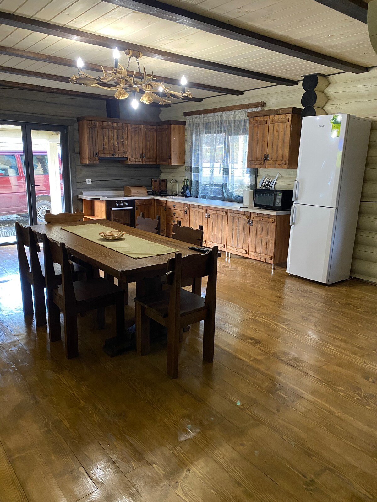 Relájate en un lugar acogedor y elegante. Aquí puedes olvidarte del ajetreo y el bullicio cotidianos, en combinación con la belleza de las pintorescas montañas y el aire limpio. La belleza de las montañas te encantará a primera vista y querrás volver una y otra vez. Tenemos una gran ventaja porque no hay turistas cerca, y puedes disfrutar del descanso. La chimenea en una noche fría te calentará y creará un ambiente inolvidable. Además, tenemos todos los muebles hechos de nogal natural, lo que da un ambiente increíble. ¡Te estamos esperando!