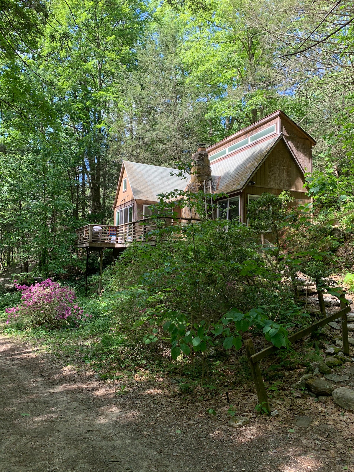 ¡Bienvenido a nuestra aislada cabaña de mediados de siglo ubicada en las estribaciones de las Berkshires en el noroeste de CT! Cuando te hospedes aquí encontrarás más de tres acres privados de helechos, bosques, flores silvestres y un arroyo de truchas nativas a un tiro de piedra de la puerta trasera con tu bañera de hidromasaje privada para relajarte. Más allá del arroyo hay cientos de acres de reserva forestal estatal. Disfruta de excelentes rutas de senderismo, pesca, esquí, antigüedades y restaurantes a pocos minutos. A solo 2 horas de Nueva York y a 8 minutos del histórico centro de Norfolk.