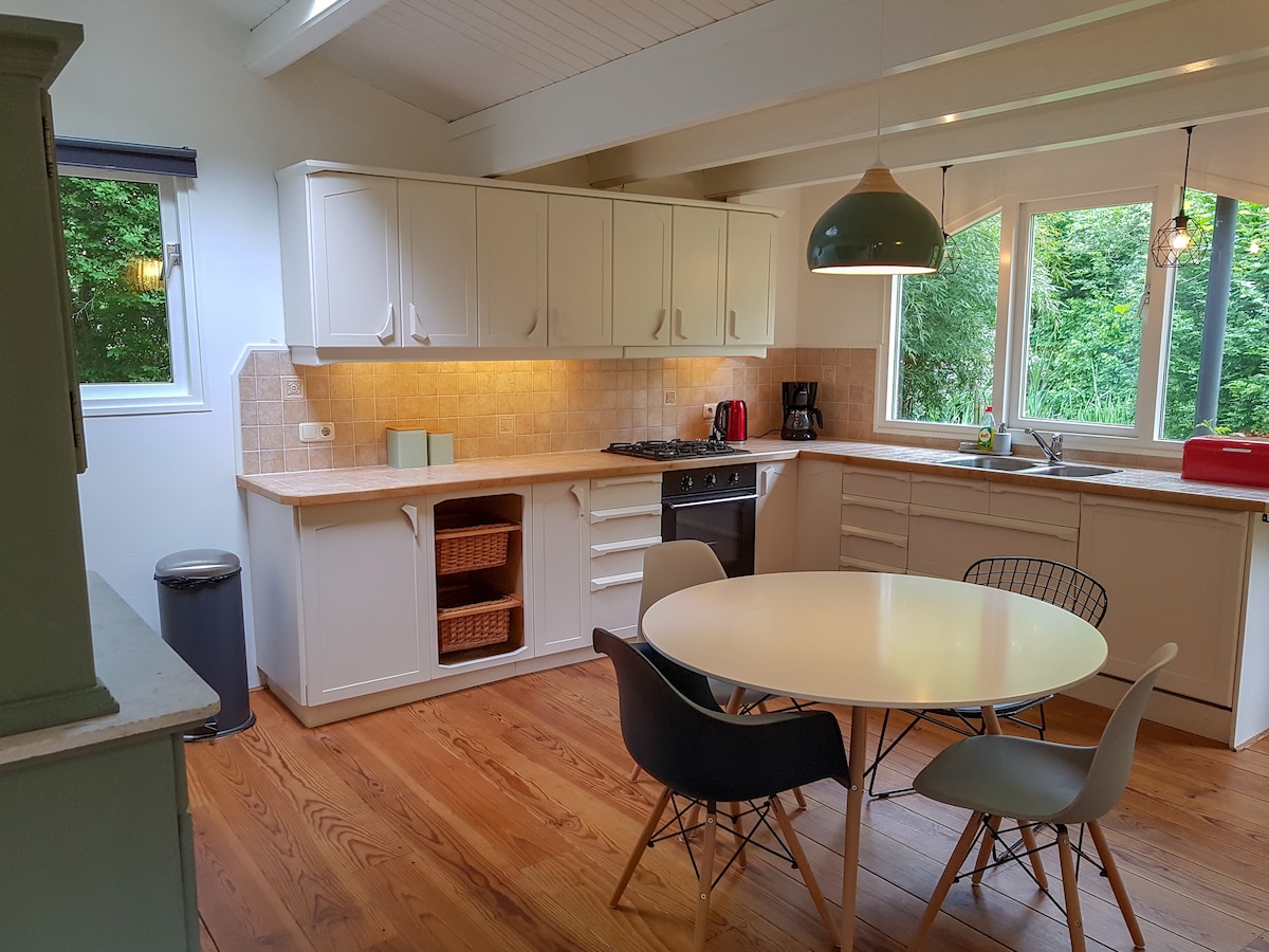 Bonita casa de vacaciones con un dormitorio grande y cocina con zona de cocción y campana extractora. También cuenta con nevera con congelador y horno/microondas. El acogedor salón de estilo rural tiene un sofá de 2 x 2 plazas y una mesa de comedor para 4 personas. El salón está equipado con una estufa de leña que se puede utilizar (bolsas de madera disponibles por 6,00 € cada una). La casa está equipada con internet y TV. Hay un cobertizo para bicicletas con cerradura y conexión eléctrica (para cargar bicicletas eléctricas).