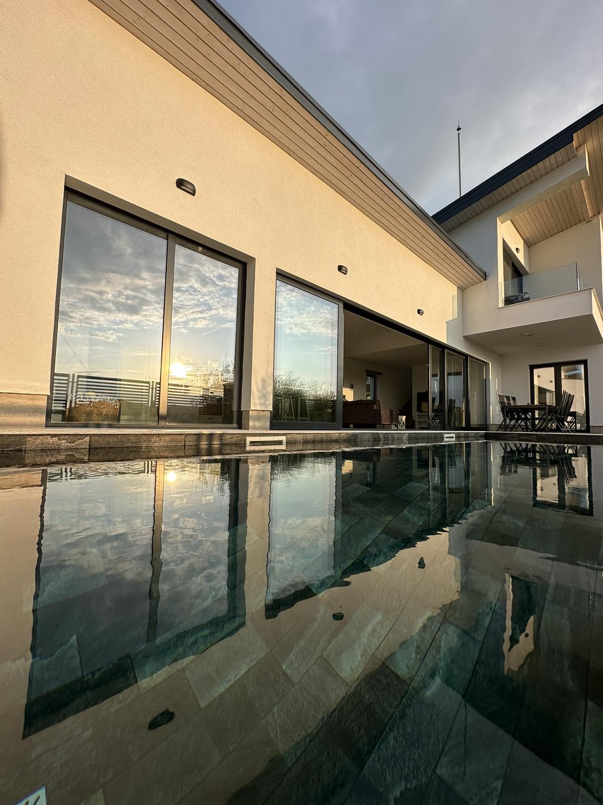 Villa de lujo al atardecer con piscina a 350 metros de la playa