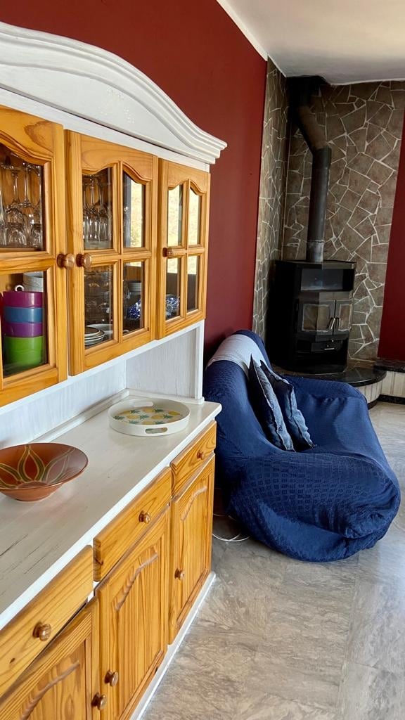 Rodeada de olivos y con una impresionante vista panorámica, ¡esta casa con energía solar no dejará de sorprenderte! La cocina y el salón no están separados por ninguna pared y esto crea un ambiente abierto y cómodo. Cultivamos nuestra comida de forma ecológica y tenemos 8 pollos y 2 cabras, que nos proporcionan leche fresca y huevos todos los días. Así que no pierdas el tiempo en centros vacacionales abarrotados y apartamentos aburridos. ¡Ven a alojarte en nuestra casa, conoce a nuestras encantadoras cabras y vive una experiencia nueva!