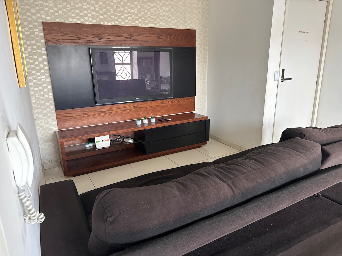 Un dormitorio con 1 cama doble y otro con una cama individual, además de 1 colchón adicional. TV vía satélite con canales abiertos, wifi de 600 Gbs. Ventilador, Cafetera, microondas, refrigerador, cubiertos. No hay fogones. Preferiría que trajeras toallas, pero puedo prestarte algunas.