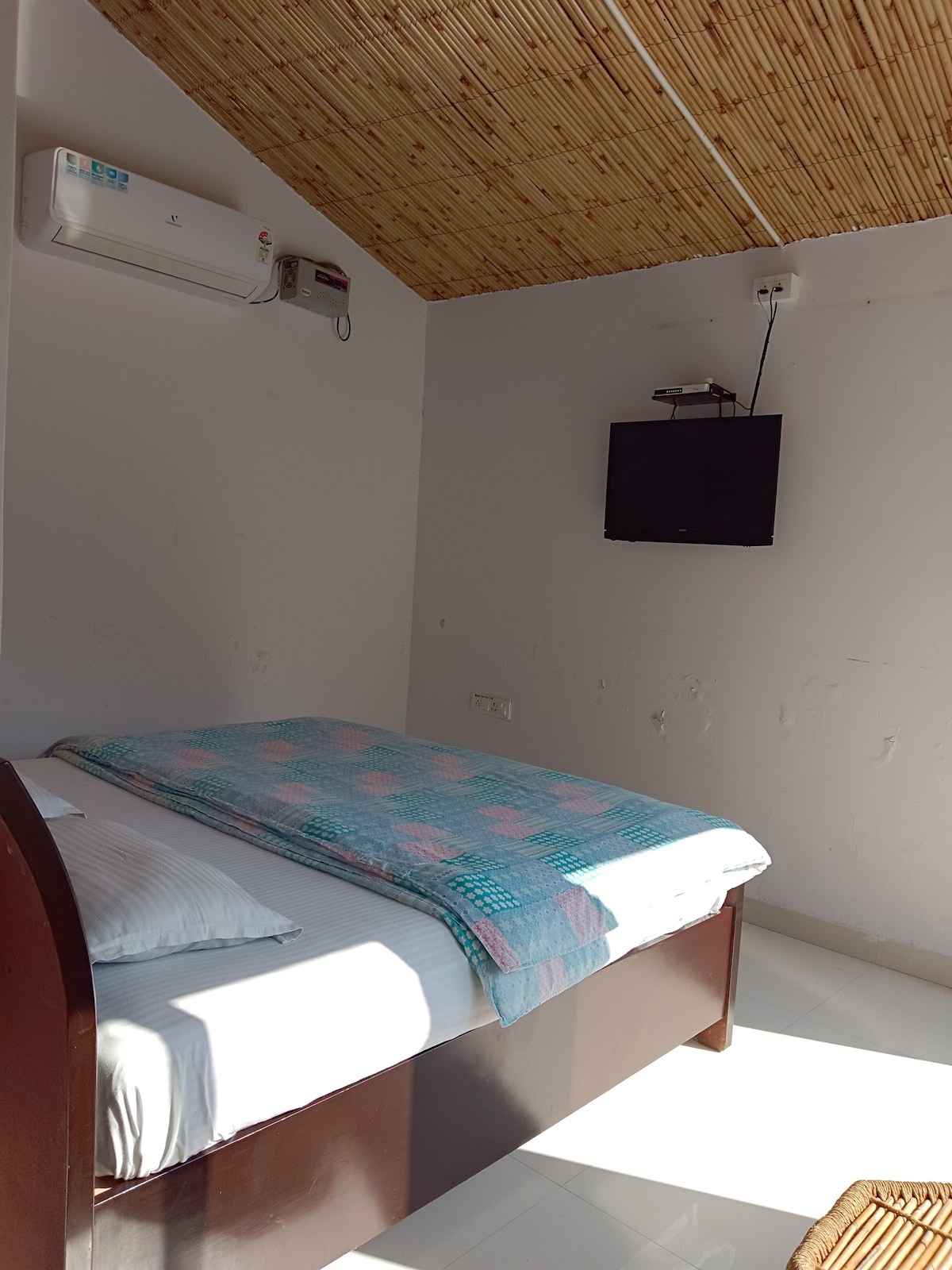 Acogedora habitación con comedor, restaurante y acceso a la piscina. Relájate en esta serena y cómoda habitación privada situada en las colinas de Bhimtal. Ideal para parejas, viajeros solitarios o familias pequeñas, la habitación ofrece un refugio tranquilo rodeado de naturaleza. Disfruta de acceso a un hermoso comedor compartido, un restaurante en el lugar que sirve comidas locales y de múltiples cocinas, y una piscina resplandeciente para relajarse y tomar el sol.