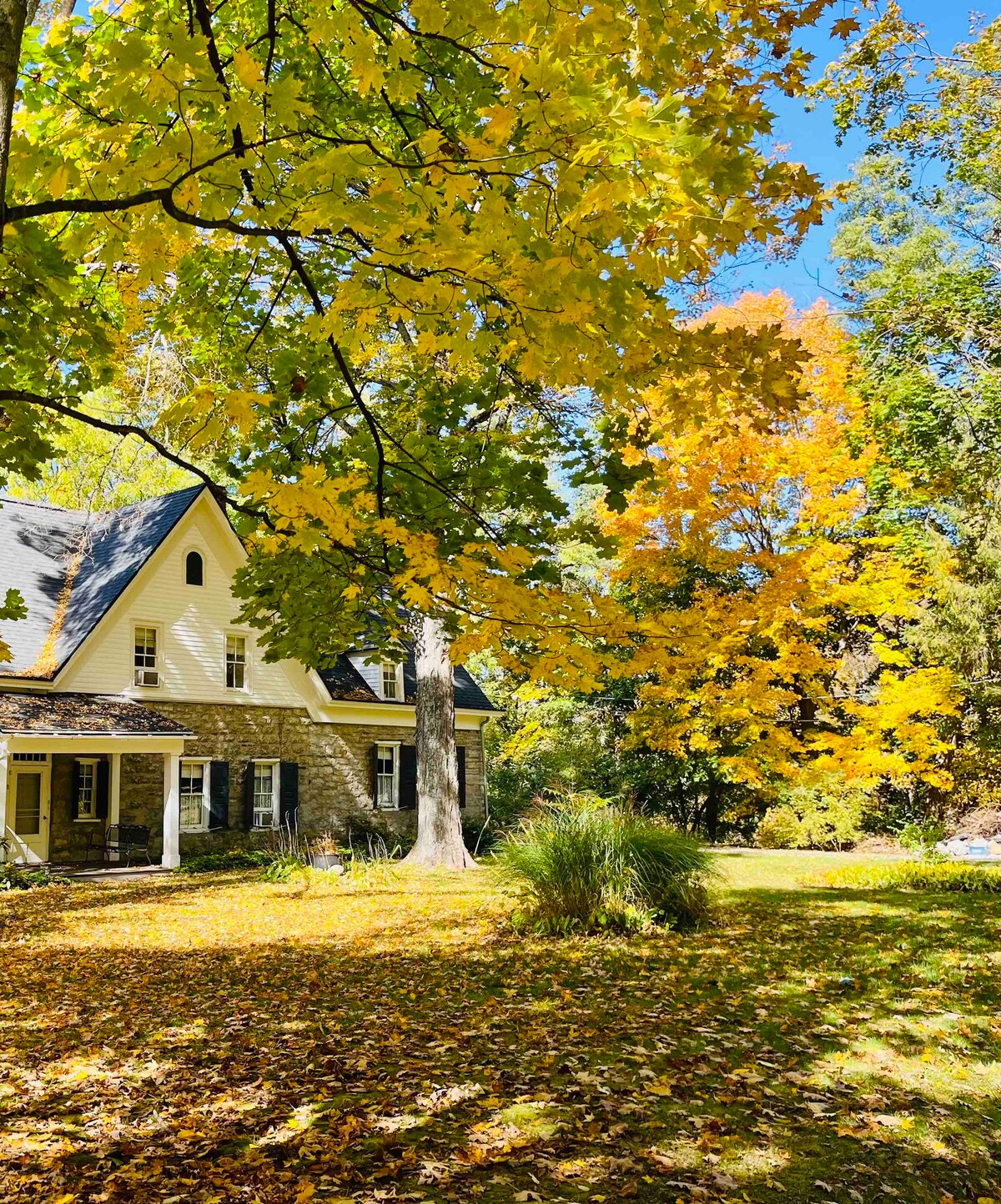 Reconnect with yourself & nature. The Georgian style home is set on 6 wooded acres and surrounded by rugged rock ledges, minutes to Marist, The Culinary, Roosevelt & Vanderbilt estates. THE HARVEST GUEST HOUSE offers a genuine Hudson Valley stay. Your suite has its own private entrance, bathroom & fireplace. Enjoy a comfortable place to unwind after exploring nearby trails, river towns, and historic sites. Relaxed, real, and rooted in nature.