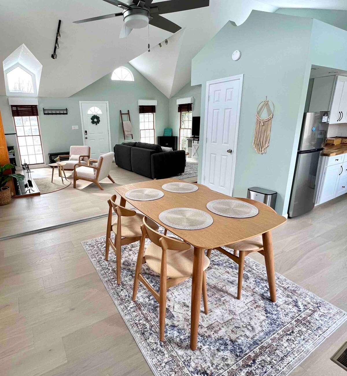 Casi 2000 pies cuadrados de gran casa son tuyos para disfrutar. Cocina nueva. El comedor y la sala de estar (con TV inteligente) tienen techos altos, lámparas de araña brillantes y mucha luz. El pasillo cuenta con medio baño, armario de servicio y rincón de trabajo. 3 dormitorios, baño completo y lavandería arriba. Capacidad para 5-6 personas, dependiendo de tu grupo (consulta los dormitorios para ver). Acceso a un gran patio vallado y terraza incluida. Tenemos café y té para los huéspedes que reserven con antelación, y encontrarás varios condimentos y alimentos básicos en los armarios.