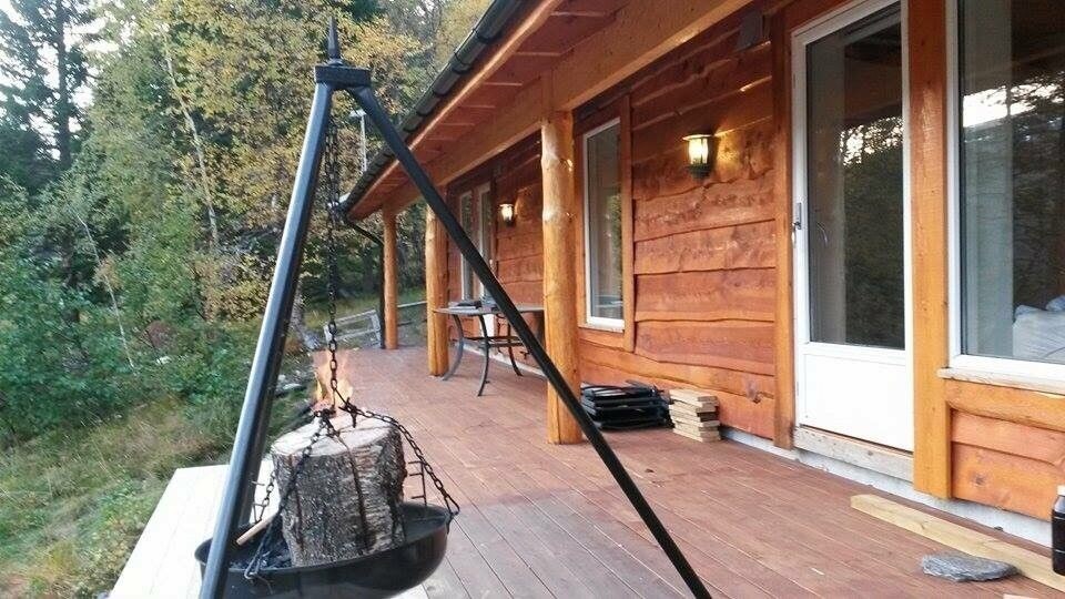 La cabaña está en un área de cabaña más pequeña, donde cada cabaña tiene una ubicación grande y protegida en relación entre sí. Nuestra cabaña se encuentra al final de la carretera, en la colina, con unas vistas espectaculares de las montañas al otro lado del río. La cabaña es de aproximadamente 84 metros cuadrados, en la superficie del suelo, con un techo además. Está bien equipado con cualquier cosa que necesites. El inquilino debe traer ropa de cama, toallas e incluso limpiar la cabina antes de la salida, dependemos de que los inquilinos dejen la cabina limpia y ordenada para el próximo inquilino.
